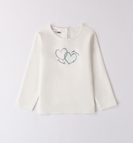 Maglietta per bambina iDO 9 mesi – 8 anni realizzata in interlock 100% cotone. La maglietta è in tinta unita con cuori glitter intrecciati.
