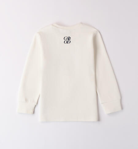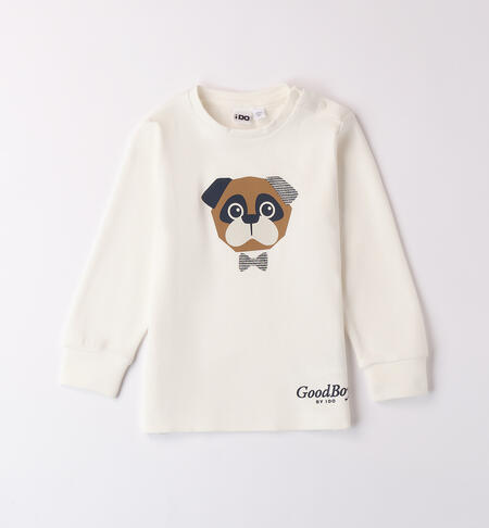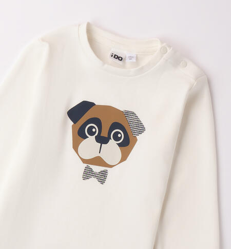 Maglietta per bambino iDO realizzata in interlock 100% cotone. Il modello presenta, fino alla taglia 3 anni, apertura sulla spalla con bottoni a pressione per agevolare il cambio e la vestizione. La maglietta รจ in fantasia tinta unita con cane.