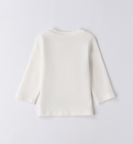 Maglietta bimbo neonato iDO in interlock 100% cotone. Il modello presenta apertura sulla spalla con bottoni a pressione per agevolare il cambio e la vestizione, fantasia tinta unita con stampa dinosauro.
