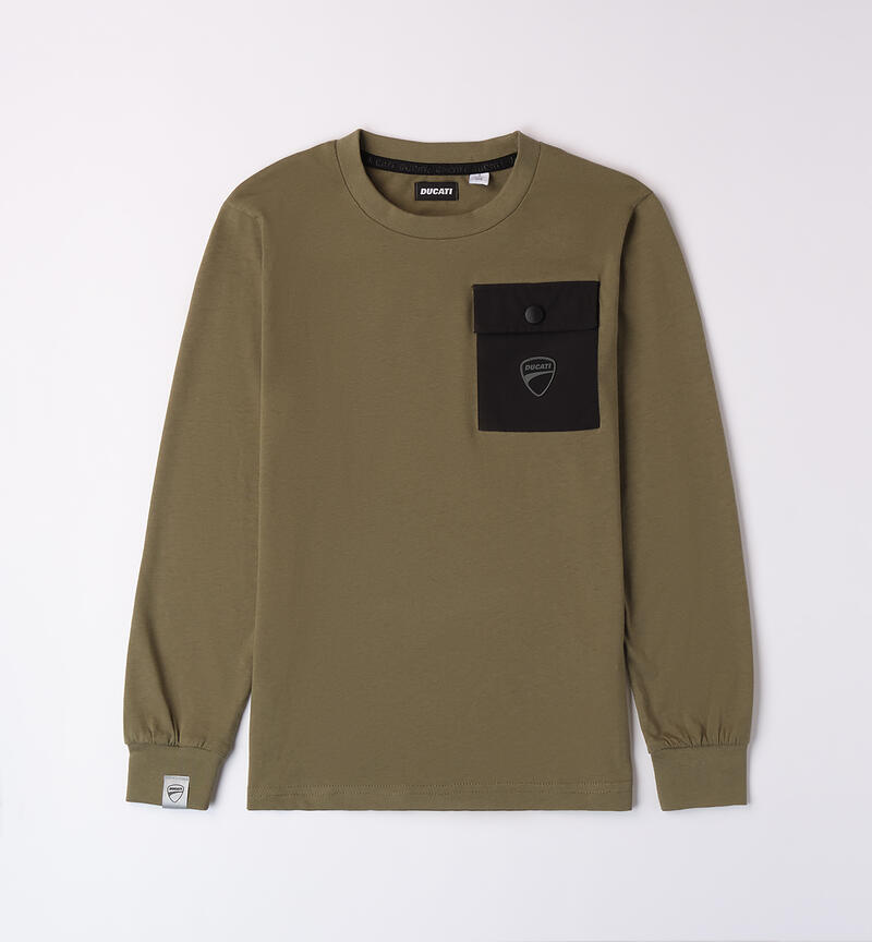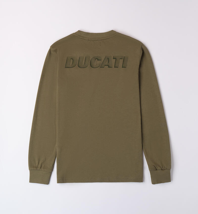 Maglietta Ducati per ragazzo realizzata in jersey 100% cotone. Il modello, girocollo, è realizzato in tinta unita con stampa Ducati e sulla schiena e taschino davanti.