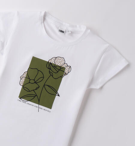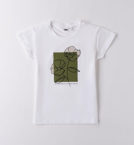 T-shirt ragazza iDO 8-16 anni realizzata in jersey stretch di cotone. Il modello è in fantasia tinta unita con stampa frontale e borchiette
