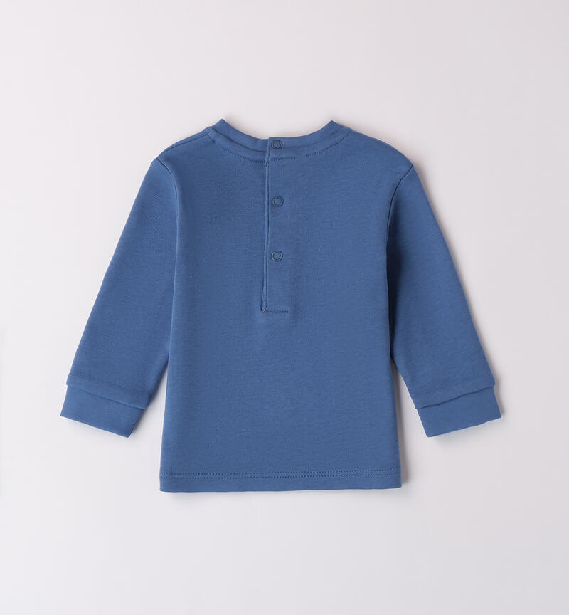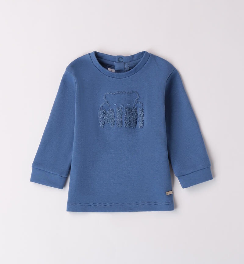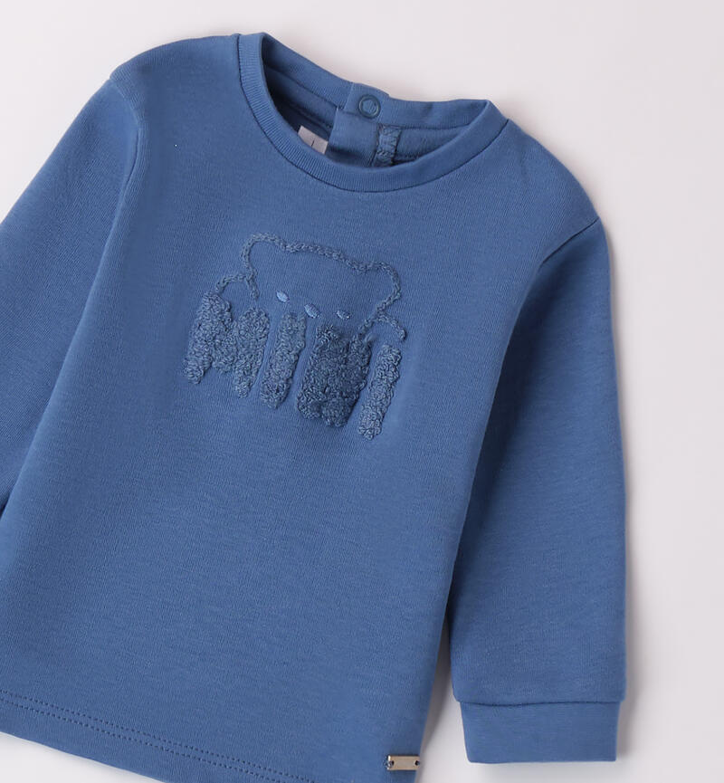 Maglietta per bimbo Minibanda 1-24 mesi realizzata in interlock 100% cotone. Il modello presenta apertura sul retro con bottoni a pressione per agevolare il cambio e la vestizione. La felpa รจ realizzata in fantasia tinta unita con ricamo di orso e scritta “Mini”.