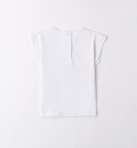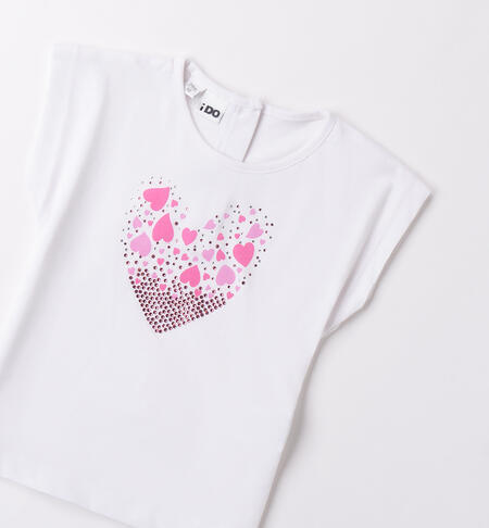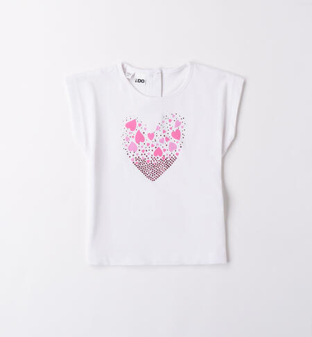 T-Shirt bambina iDO da 9 mesi a 8 anni realizzata in jersey 100% cotone. Il modello presenta apertura sul retro con bottoni, fantasia tinta unita e cuore frontale con glitter