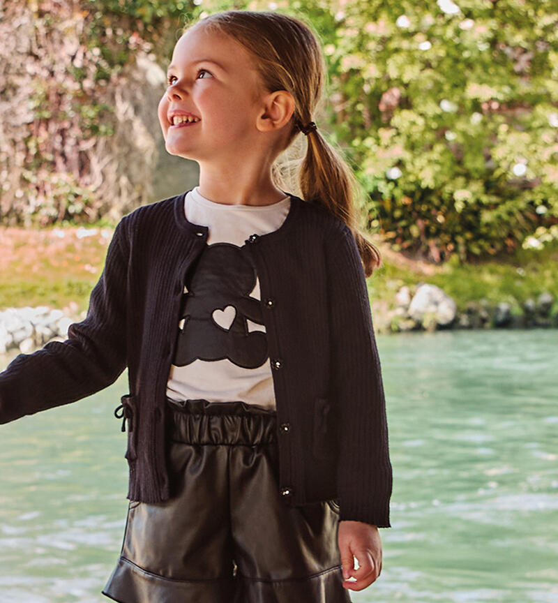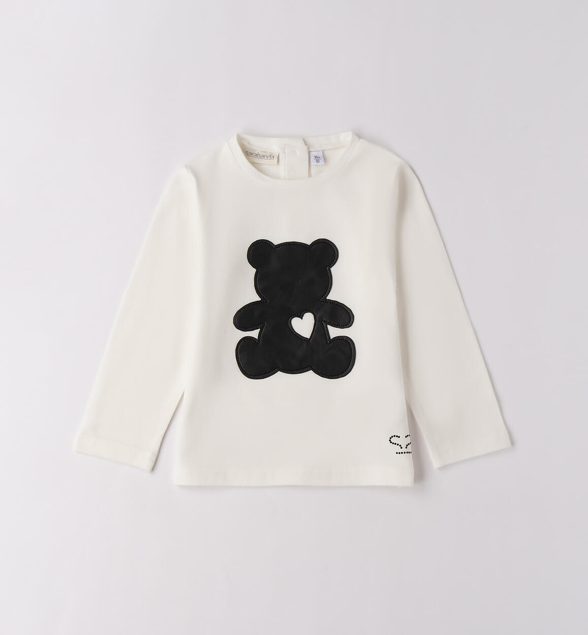 Maglietta bambina Sarabanda realizzata in jersey stretch di caldo cotone, manopesca. Il modello è arricchito con applicazione in tessuto lucido. Il prodotto non contiene materiali di derivazione animale. Animal free è un marchio di LAV www.animalfree.info