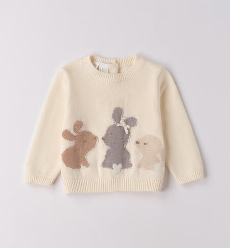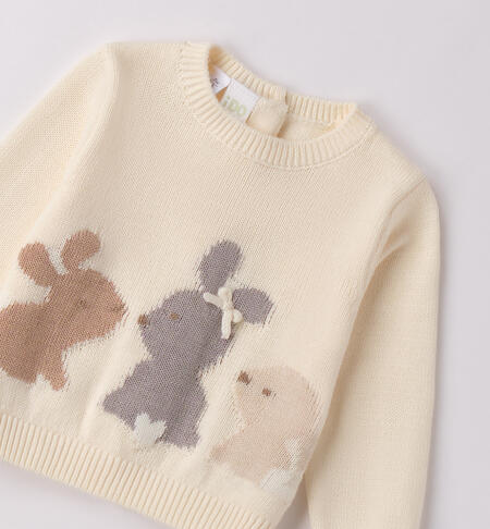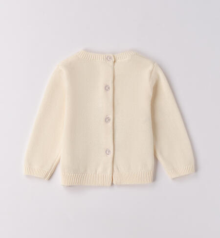 Maglioncino per neonata iDO 1-24 mesi realizzato in tricot 100% cotone. Il modello presenta apertura sul retro con bottoni, e dolce ricamo intarsio davanti.