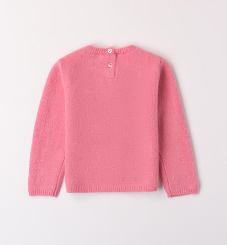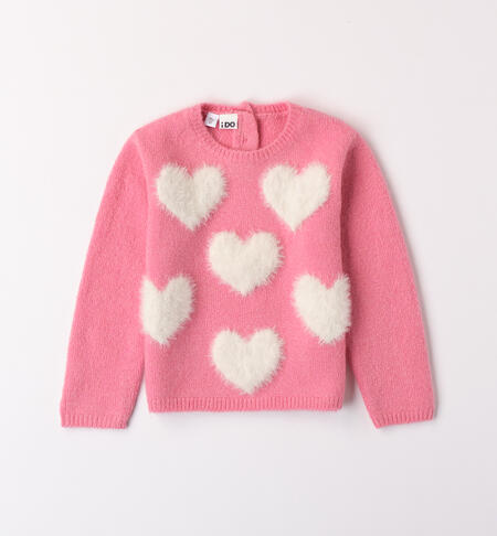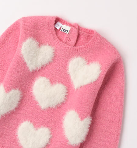Pullover per bambina iDO realizzato in tricot. Il modello presenta apertura sul retro con bottoni. Il maglione è arricchito da cuori realizzati con filato lurex più lungo.