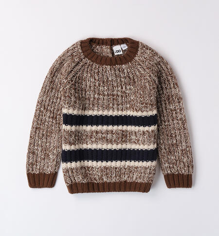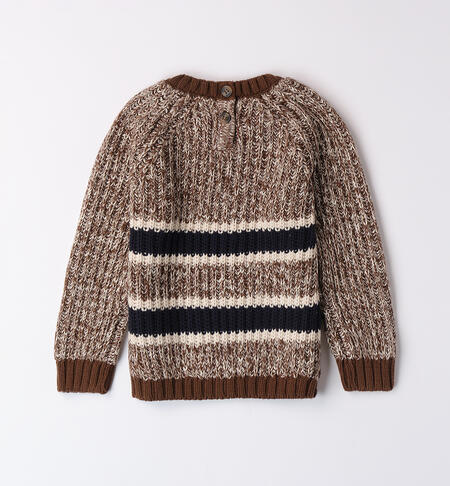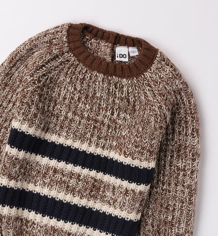Maglione per bambino iDO realizzato in tricot. Il modello presenta apertura sul retro con bottoni fino alla taglia 3 anni e fantasia a righe.
