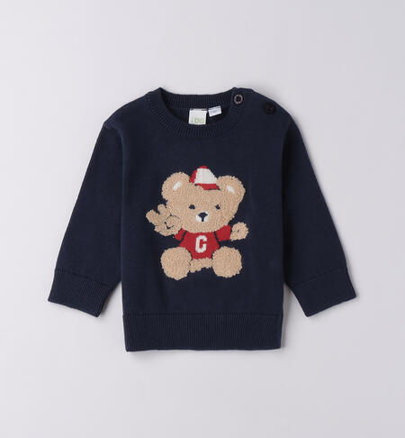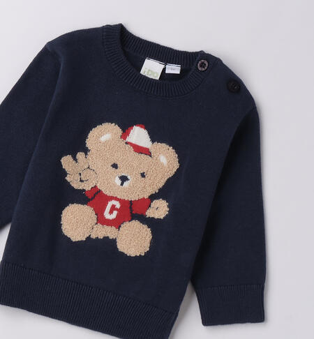 Maglioncino per bimbo iDO 1-24 mesi realizzato in tricot 100% cotone. Il modello presenta apertura sulla spalla con bottoni e fantasia tinta unita con orsetto.