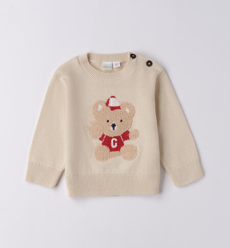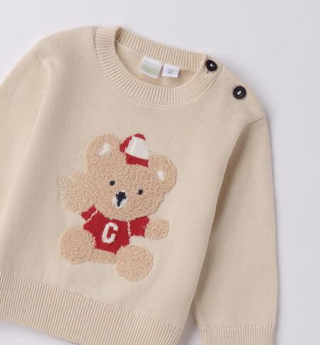 Maglioncino per bimbo iDO 1-24 mesi realizzato in tricot 100% cotone. Il modello presenta apertura sulla spalla con bottoni e fantasia tinta unita con orsetto.