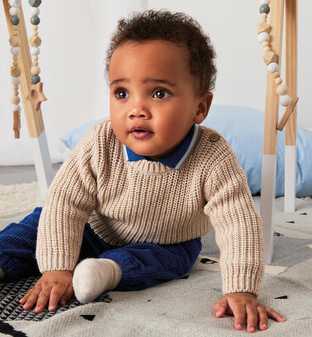 Maglioncino per neonato iDO 1-24 mesi realizzato in tricot di cotone misto lana. Il modello presenta apertura sulla spalla con bottoni e fantasia tinta unita.
