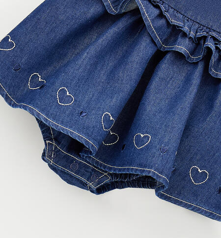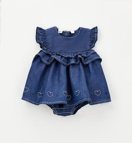 Pagliaccetto iDO per bimba da 1 a 24 mesi realizzato in cotone e lyocell. Modello con mutandina e apertura sul retro e nel sottogamba con bottoni a pressione. Ricamo cuori sul fondo.