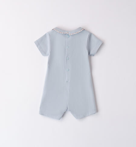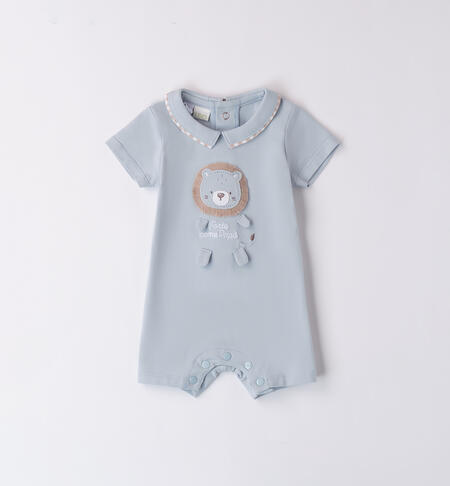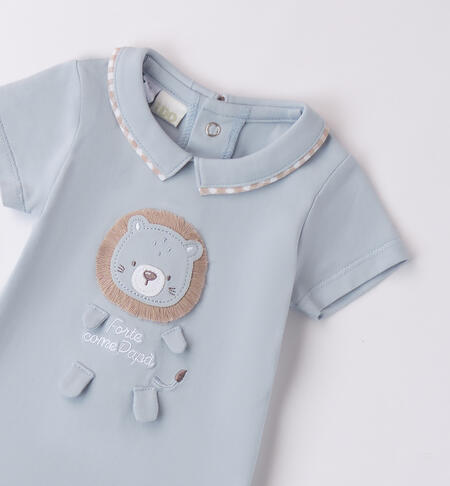 Pagliaccetto per neonato iDO 0-18 mesi in jersey elasticizzato di cotone. Apertura sul retro e nel sottogamba con bottoni a pressione per agevolare il cambio e la vestizione. Simpatiche applicazioni davanti.