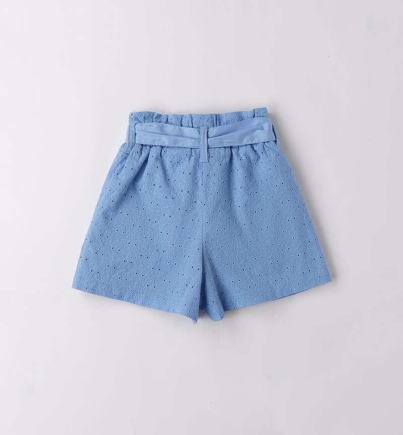 Pantaloncini per bambina Sarabanda da 9 mesi a 8 anni in 100% cotone. Il modello presenta apertura vita elasticizzata con cintura, tasche laterali e fantasia tinta unita.