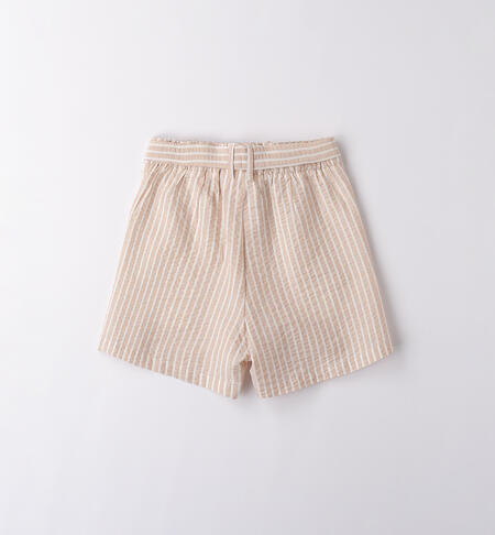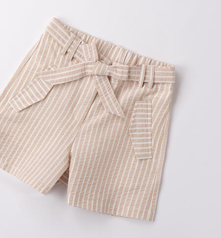 Pantalone da ragazza iDO 8-16 anni realizzato in tessuto seersucker. Il modello presenta apertura con zip e bottone, cintura in vita, tasche laterali e fantasia a righe.