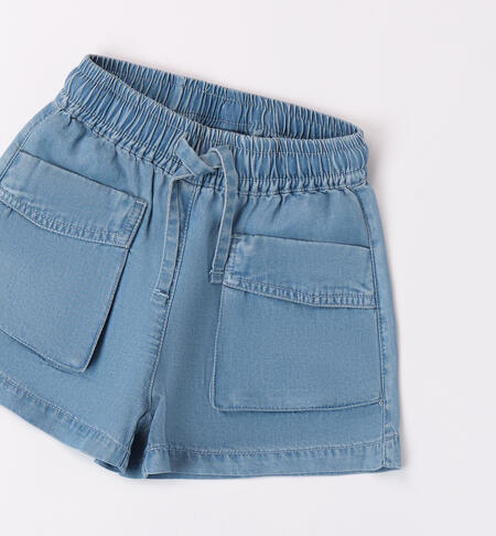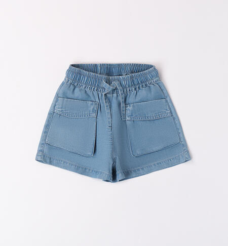 Pantalone corto per bambina iDO realizzato in fresco lyocell con vita elasticizzata con coulisse e tasconi davanti.