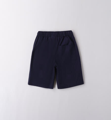 Pantalone corto per ragazzo iDO 8-16 anni realizzato in popeline stretch di cotone. Il modello ha vita elasticizzata con coulisse, tasche laterali e fantasia tinta unita. Modello regular fit. Lunghezza al ginocchio