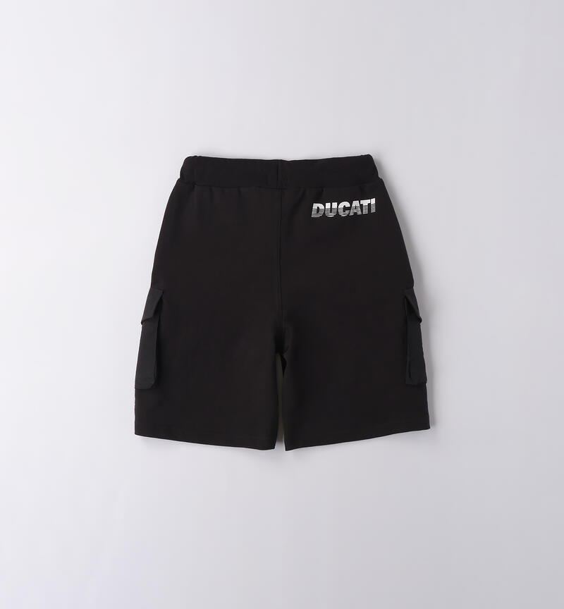 Pantalone corto Ducati per ragazzo da 3 a 16 anni realizzato in felpa 100% cotone con tasconi laterali in nylon. Modello basket.