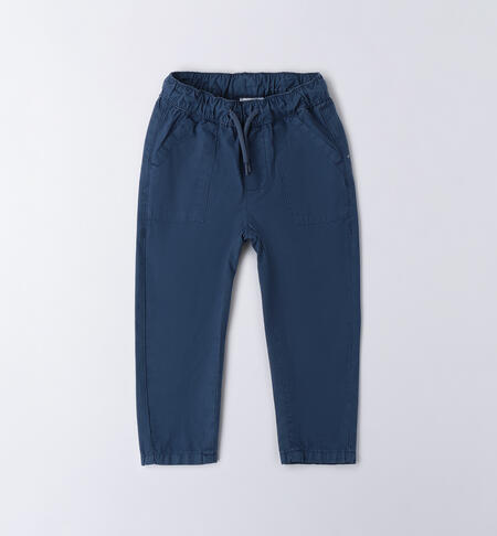 Pantalone lungo blu per bambino da 9 mesi a 8 anni iDO realizzato in 100% cotone. Elastico in vita con coulisse. Balloon fit.