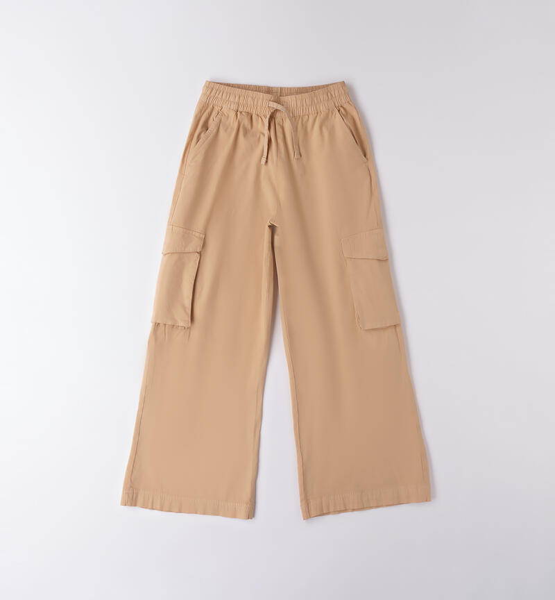Pantalone tecnico per ragazza Sarabanda da 8 a 16 anni realizzato in parachute, in cotone stretch. Modello ampio con tasconi laterali.