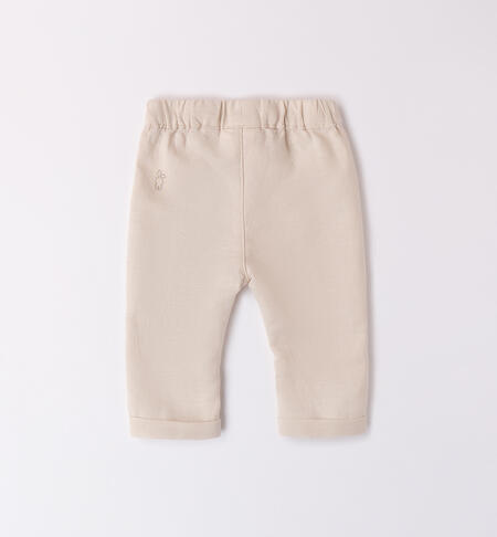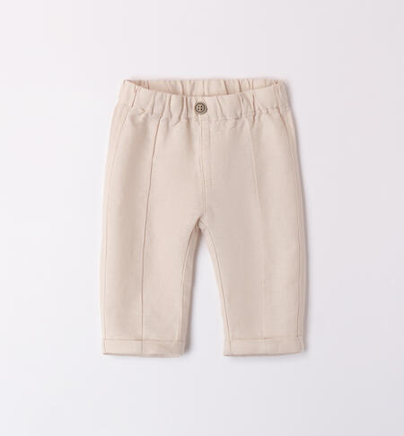 Pantaloni per bimbo iDO 1-24 mesi in tessuto misto di lino e cotone. Il modello presenta vita elasticizzata con finto bottone e fantasia tinta unita