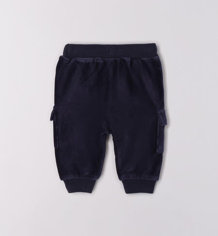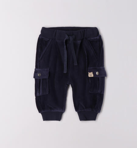 Pantaloni bimbo iDO 1-24 mesi realizzati in ciniglia effetto velluto. Il modello presenta vita elasticizzata con coulisse, tasche laterali e polsini sul fondo. I pantaloni sono realizzati in fantasia tinta.