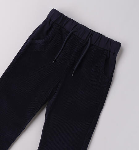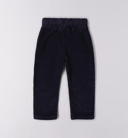 Pantalone per bambino iDO 9 mesi – 8 anni realizzato in velluto. Vita regolabile con elastico asolato interno. Relaxed fit. Tasche, coulisse in vita