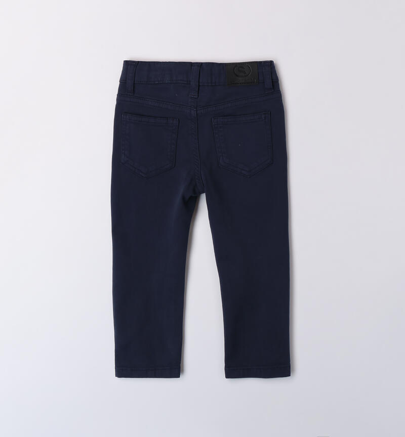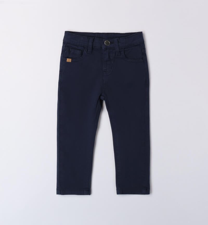 Pantalone da bambino Sarabanda 9 mesi – 8 anni realizzato in twill. Il modello ha apertura con zip e bottone, tasche laterali e fantasia tinta unita. Vestibilitร regular. Vita regolabile con elastico asolato interno.