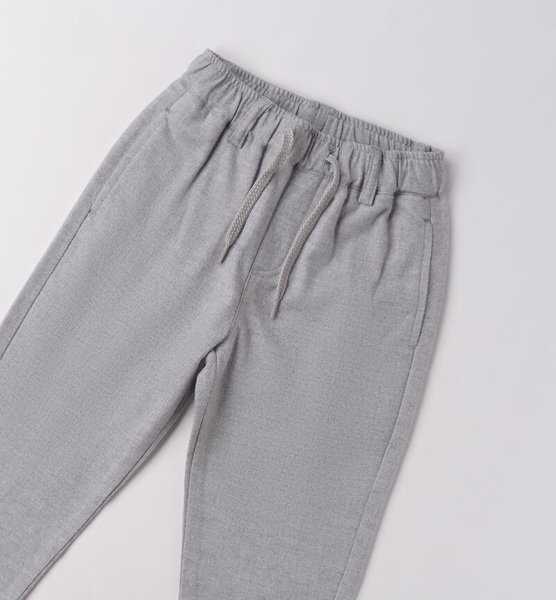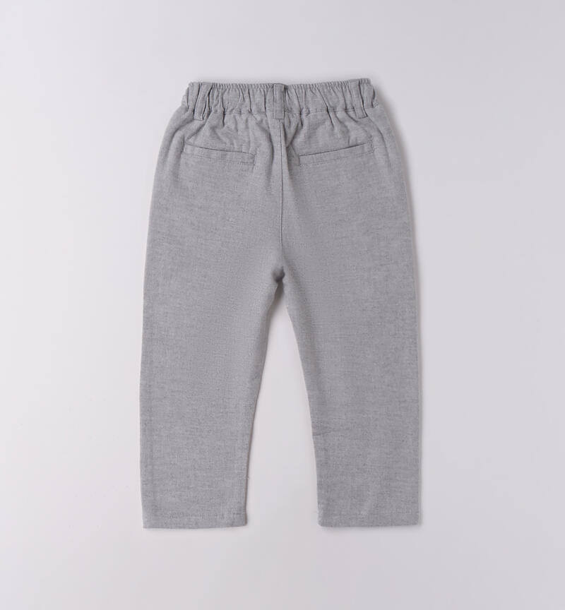 Pantalone da bambino Sarabanda 9 mesi – 8 anni realizzato in twill di cotone stretch. Il modello ha vita elasticizzata con coulisse. Vestibilitร carrot. Vita regolabile con elastico asolato interno