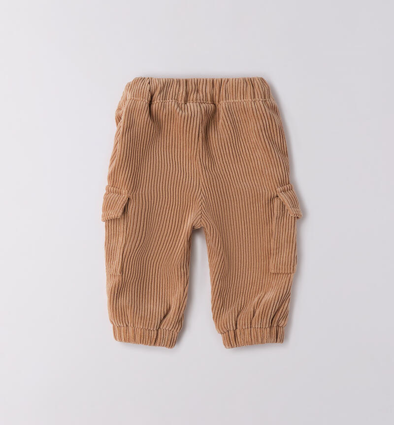 Pantalone per neonato Minibanda 1-24 mesi realizzato in velluto, modello cargo con tasconi laterali. Elastico in vita con coulisse