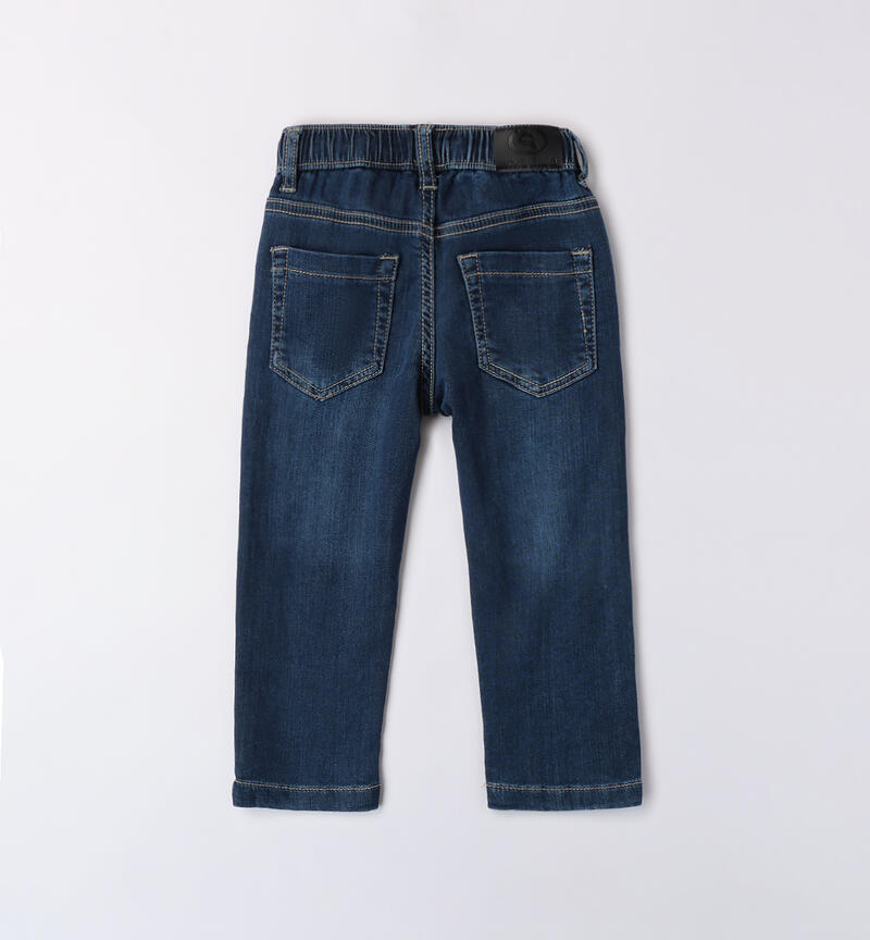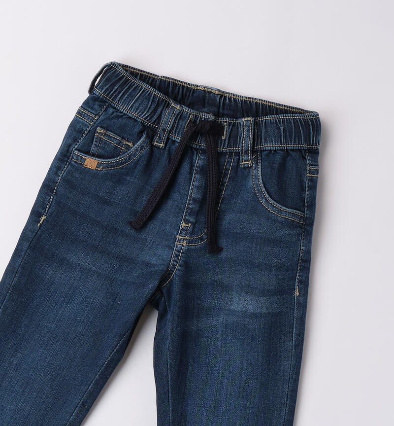 Jeans per bambino Sarabanda 9 mesi – 8 anni in denim di maglia. Modello con vita elasticizzata e coulisse, tasche laterali. Regular fit.