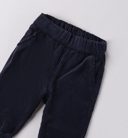 Pantaloni per bimbo iDO realizzati in velluto stretch. Il modello ha la vita regolabile con elastico asolato interno