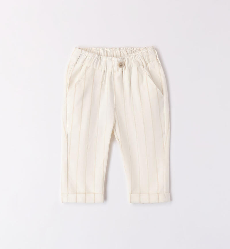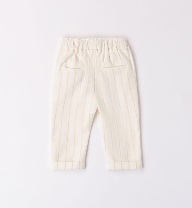 Pantalone per bimbo Minibanda 9-24 mesi realizzati in lino e viscosa a righe. Il modello presenta vita elasticizzata, finto bottone, tasche laterali e risvoltini sul fondo della gamba. Scopri tutta la selezione di Pantaloni bimbo Minibanda!