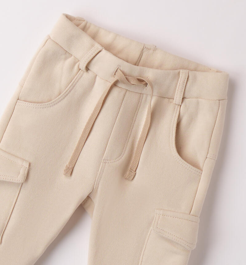 Pantalone per bimbo Minibanda 1-24 mesi in tessuto misto cotone. Il modello presenta vita elasticizzata con coulisse e polsini sul fondo. Modello multitasche felpato internamente. Pesantezza invernale.