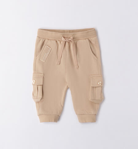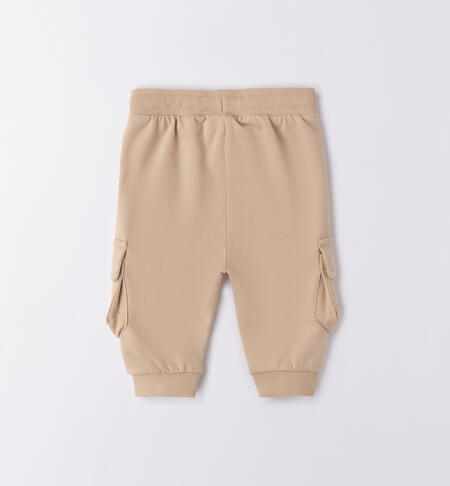 Pantalone tuta neonato iDO 1-24 mesi in felpa 100% cotone. Il modello presenta vita elasticizzata con coulisse, tasche laterali, polsini sul fondo e fantasia tinta unita.
