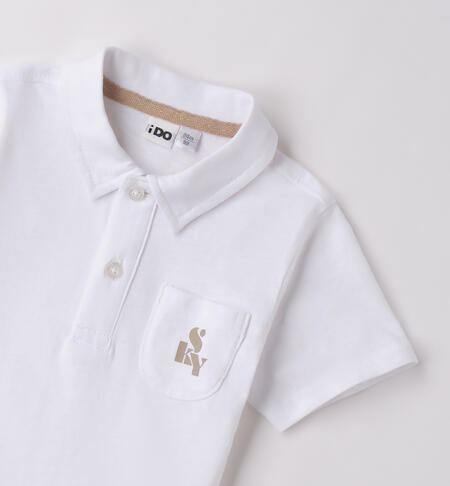Polo per bambino iDO da 9 mesi a 8 anni realizzata in jersey 100% cotone. Il modello presenta apertura frontale con bottoni, taschino e fantasia tinta unita.