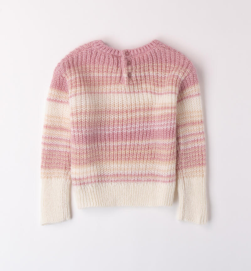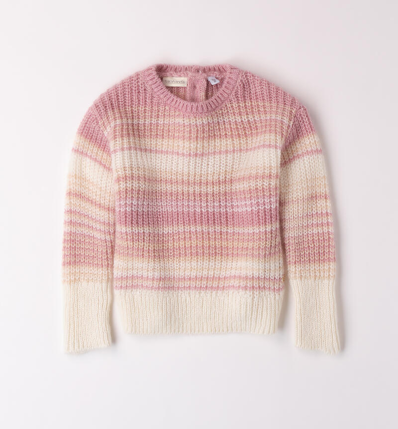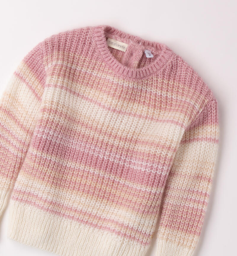 Maglione bambina Sarabanda 9 mesi – 8 anni realizzato in tricot. Il modello presenta apertura sul retro con bottoni, fantasia a righe.
