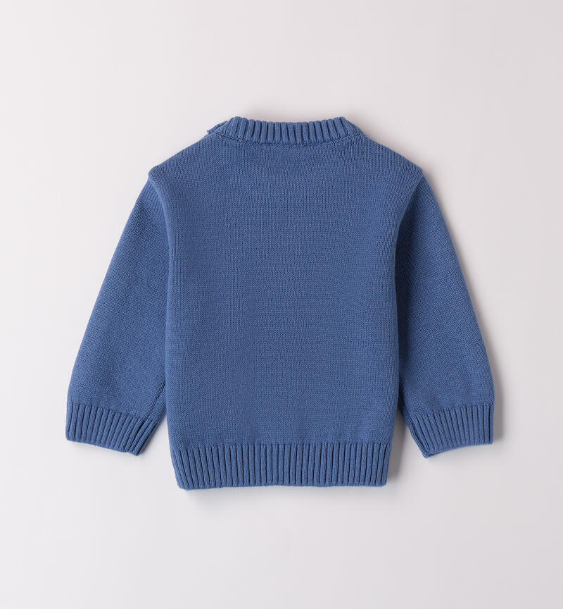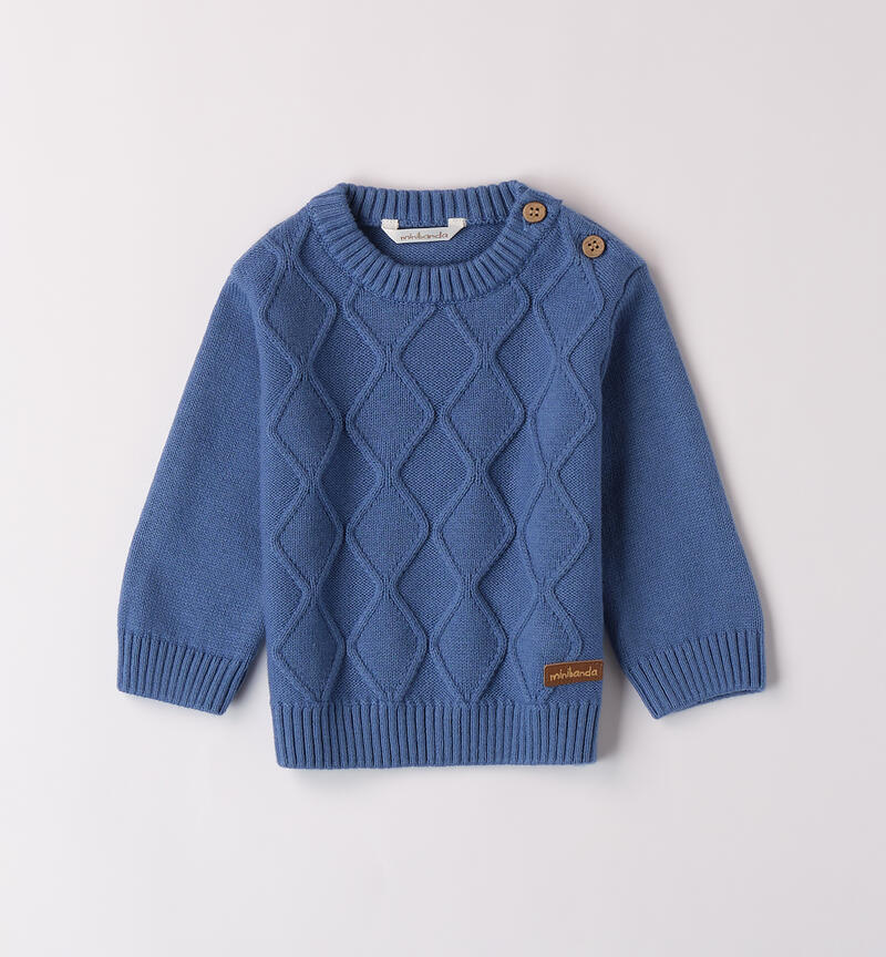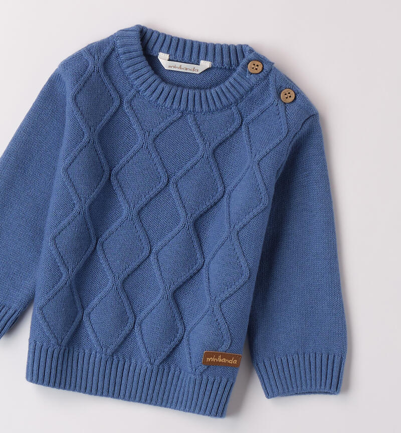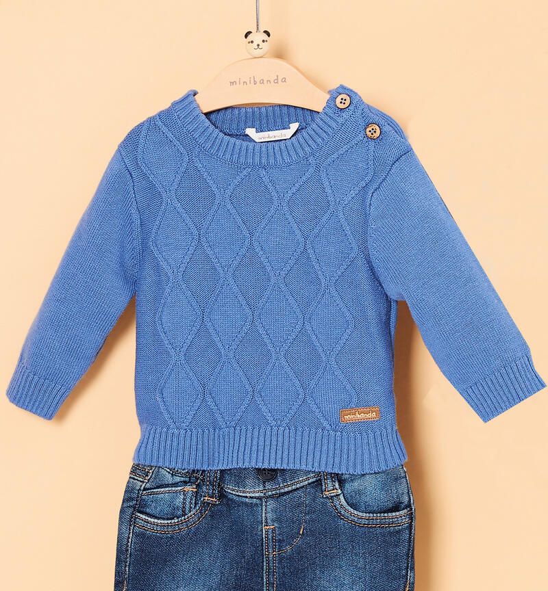 Maglioncino per bimbo Minibanda 1-24 mesi realizzato in tricot cotone e lana. Il modello presenta apertura sulla spalla con bottoni e particolare lavorazione.
