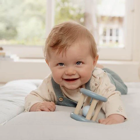 Rotola, sbatte e agita con gioia! Questo grazioso sonaglio in legno rotola e rotola, emettendo un suono allegro. I lati blu sono decorati con un’illustrazione della collezione Forest Friends, raffigurante un set di funghi magici immersi nel cuore di una foresta incantata. Progettato per promuovere la coordinazione occhio-mano, questo sonaglio ha le dimensioni perfette per essere afferrato ed esplorato dalle manine dei piรน piccoli.