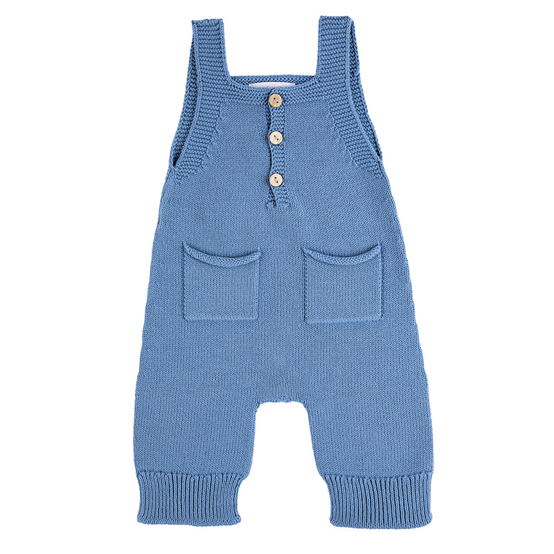 Salopette in cotone con maniche con cinturino e due tasche.