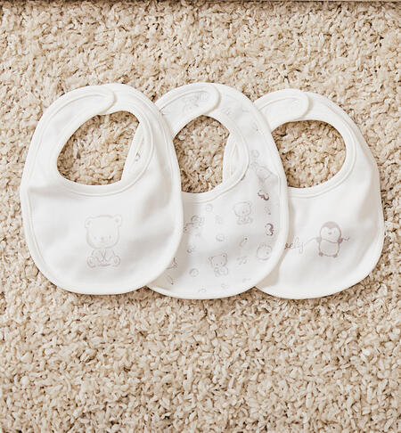 Bavette per neonati modello unisex iDO realizzate in interlock 100% cotone e apertura con bottone a pressione