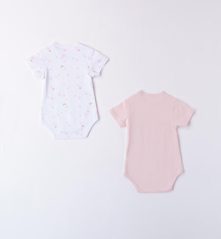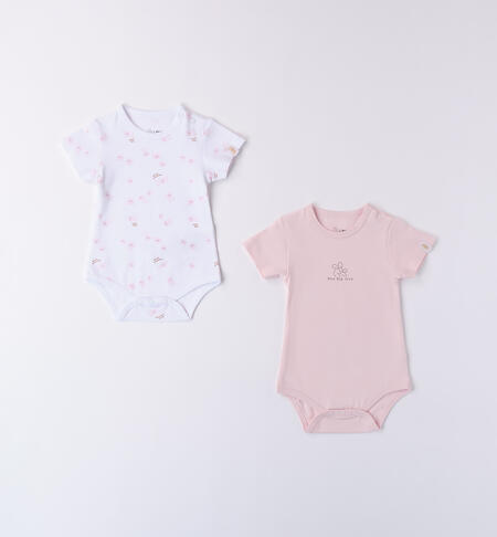 Set due body intimi per neonati iDO in jersey stretch di cotone. I modelli presentano apertura nel sottogamba con bottoni a pressione per agevolare il cambio