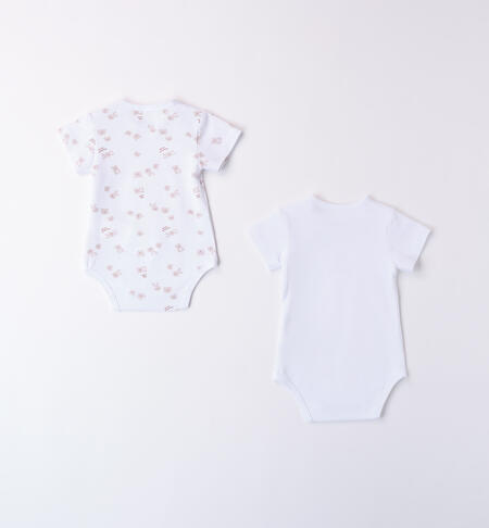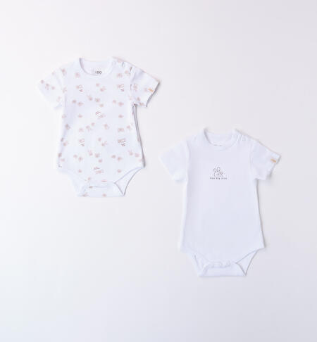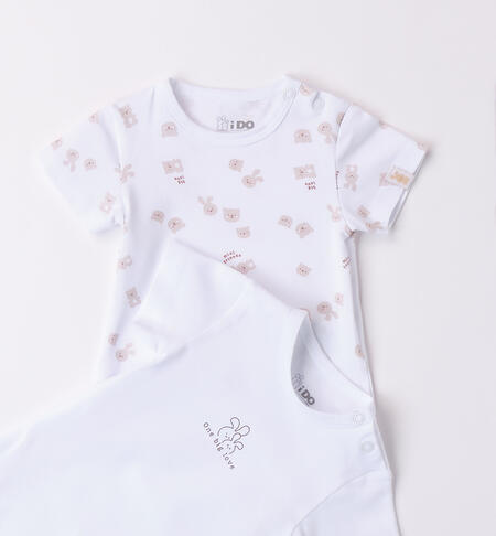 Set due body intimi per neonati iDO in jersey stretch di cotone. I modelli presentano apertura nel sottogamba con bottoni a pressione per agevolare il cambio