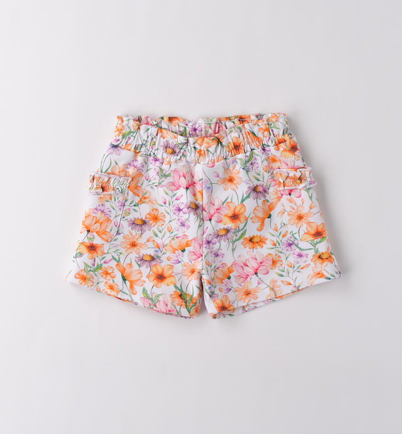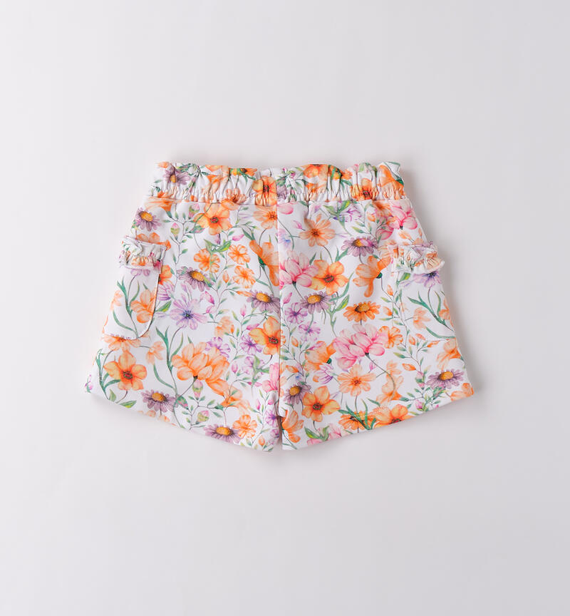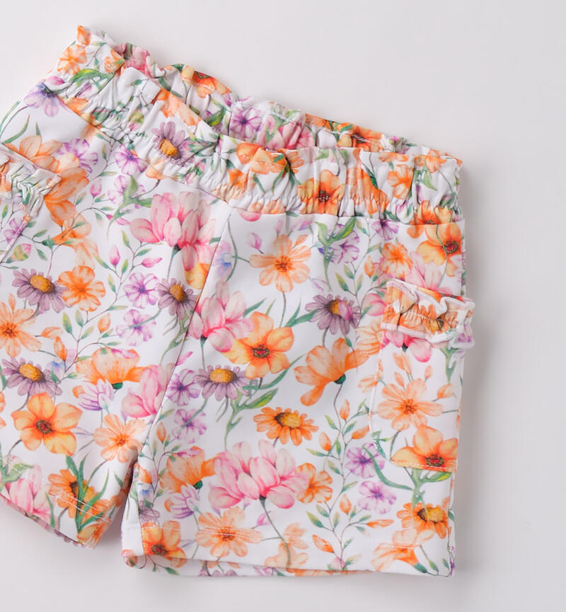 Shorts bambina Sarabanda da 9 mesi a 8 anni in tessuto di cotone. Il modello ha vita elasticizzata con coulisse, tasche laterali e fantasia allover di fiori.