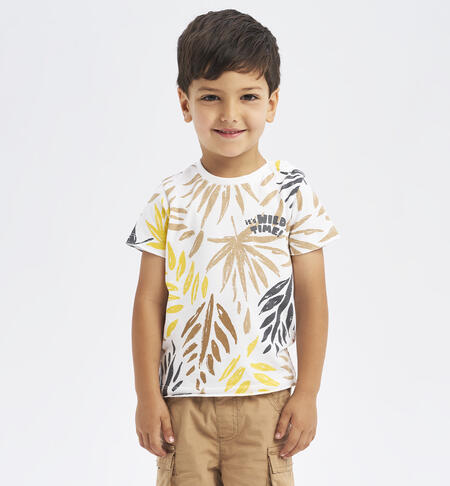 T-shirt iDO per bambino realizzata in jersey 100% cotone con grafica multicolor savana e apertura sulla spalla con bottoni a pressione fino alla taglia 3 anni.