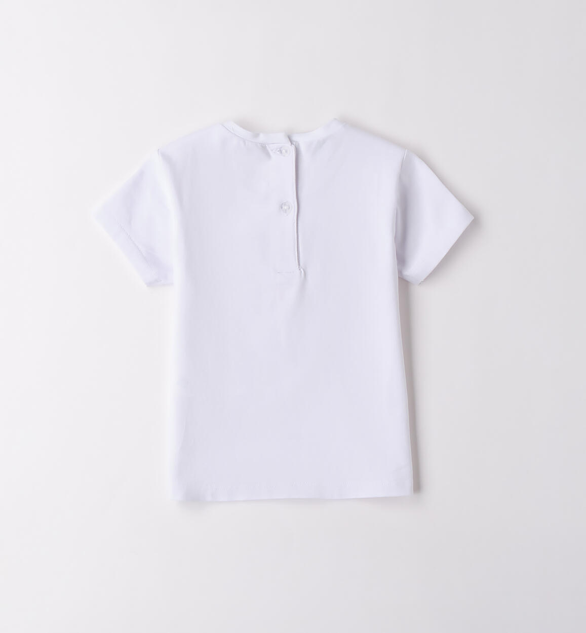 T-shirt per bambina Sarabanda da 9 mesi a 8 anni realizzata in jersey stretch di cotone con fiore in tulle con strass.