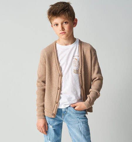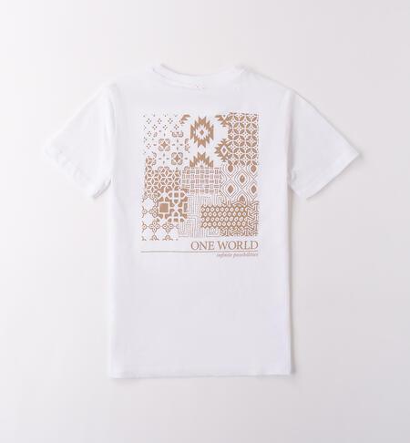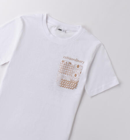 T-Shirt per ragazzo iDO realizzata in jersey 100% cotone. Il modello è in fantasia tinta unita con stampa frontale e sul retro.