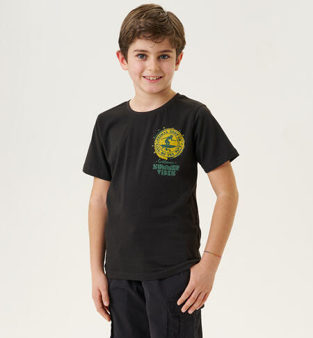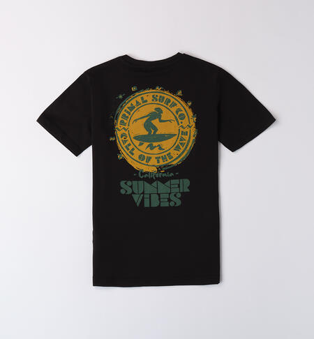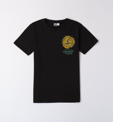 T-shirt nera per ragazzo iDO realizzata in jersey 100% cotone con maxi stampa sulla schiena e stampa davanti.