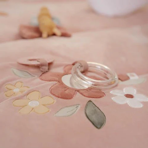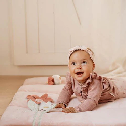Immergiti nella magia del Giardino delle Fate con questo grazioso tappeto gioco rosa. C’è così tanto da scoprire e da vedere! Parti all’avventura alla ricerca delle foglie fruscianti, incontra il dolce e soffice cervo e gioca con la farfalla e l’uccellino. C’è anche un piccolo specchio per la scoperta di sé e un anello trasparente con tre perline che tintinnano quando si muovono. Questo tappeto gioco imbottito con diverse texture e attività stimola i sensi e lo sviluppo del tuo bambino.