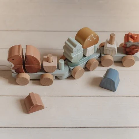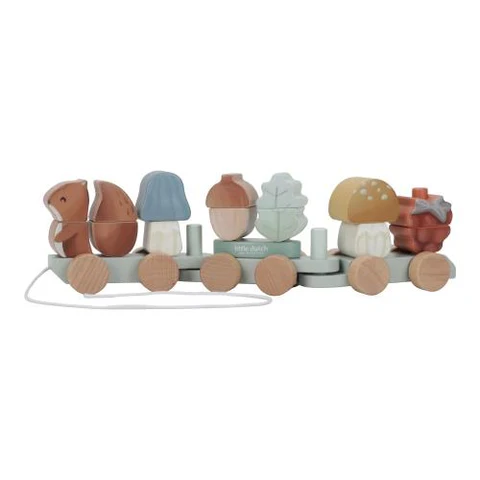 Ciuf ciuf! Raduna tutti i simpatici animali, i funghi e i tesori della foresta e sali a bordo per un viaggio magico. Impila i blocchi uno a uno sui tre vagoni di questo trenino di legno e viaggia con gli amici della Foresta. Lo scoiattolo guida il gruppo e si siede in testa. Quale fungo segue e dove si trova la pigna? Ogni blocco forma un pezzo della storia della tua immaginazione. Un modo divertente per giocare e sviluppare contemporaneamente la coordinazione occhio-mano. Il trenino รจ composto da 18 pezzi ed รจ lungo circa 45 cm.