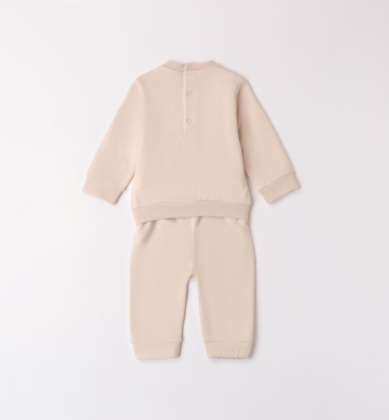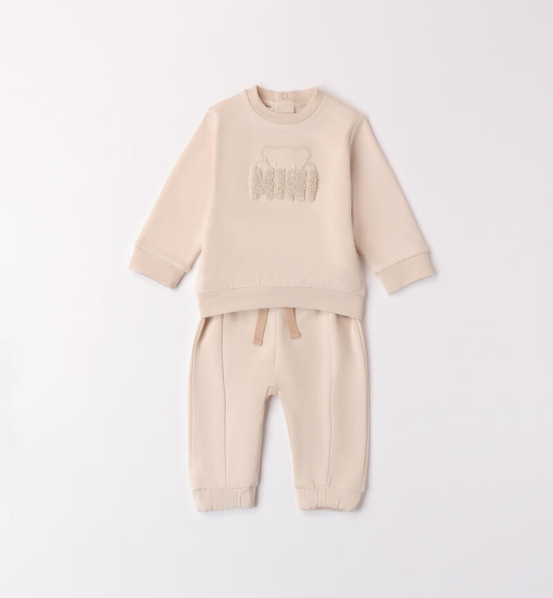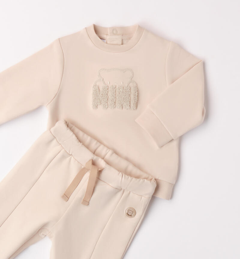 Completo neonato due pezzi Minibanda 1-24 mesi realizzato in felpa di cotone stretch, felpata internamente. Pesantezza invernale. Il modello presenta apertura sul retro tramite bottoni a pressione per agevolare il cambio e la vestizione. La felpa รจ realizzata in tinta unita con ricamo scritta frontale “Mini”. Il pantalone ha la vita elasticizzata con coulisse e polsini sul fondo gamba.